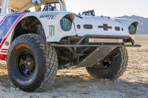 Внедорожник оснащен светодиодными фарами серии E2 на силовом бампере и R46 серией дальнего света на крыше.